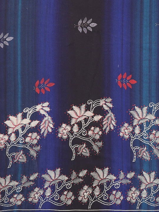 • Blue, Red & White saree