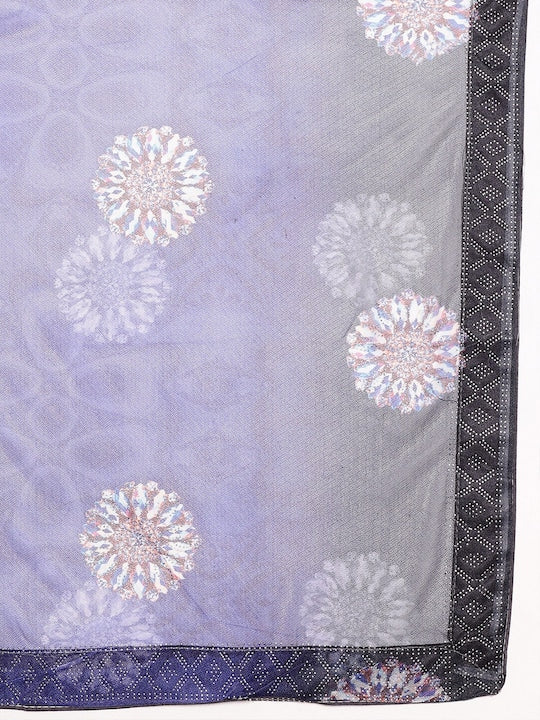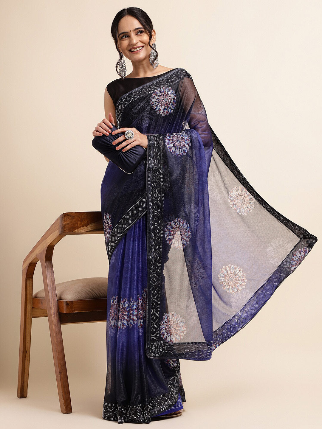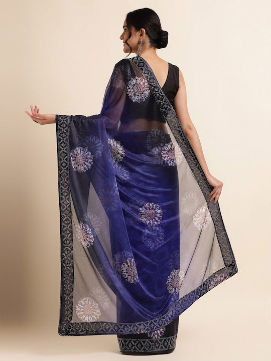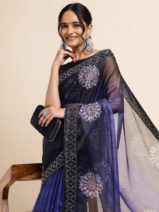 Fabmora Satin Ethnic Motifs Embellished Embroidered Lycra Designer Saree