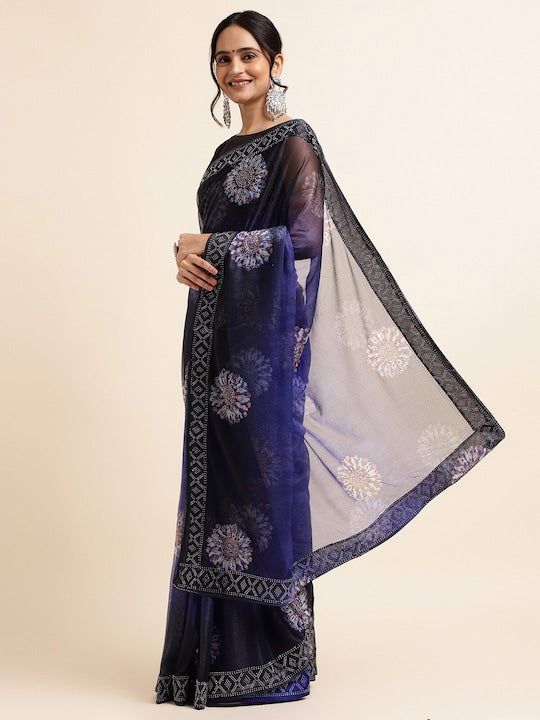 • Embellished embroidered saree with