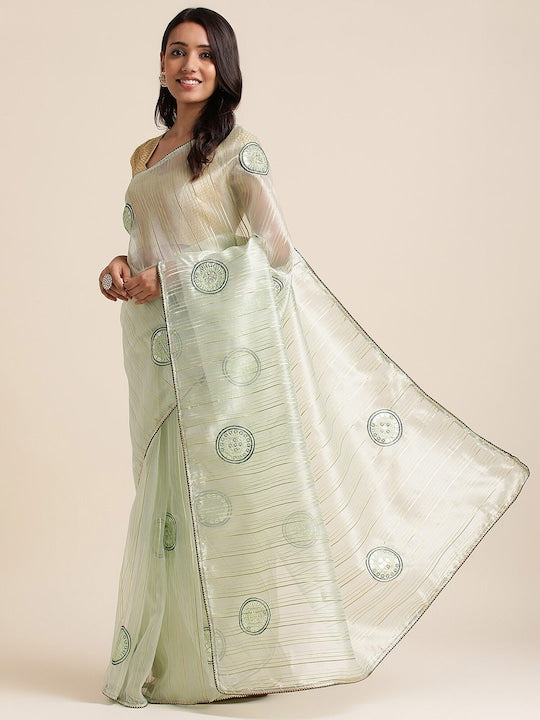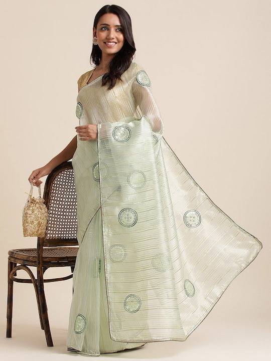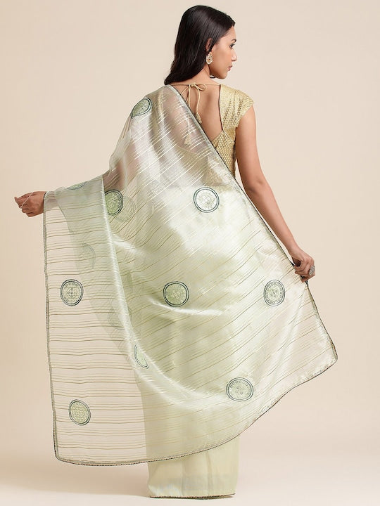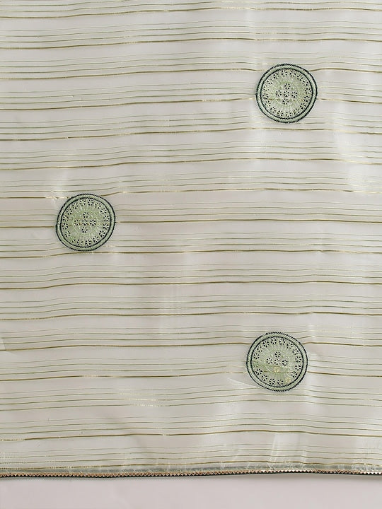 Fabmora Striped Woven Design Embroidered Organza Saree