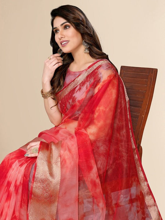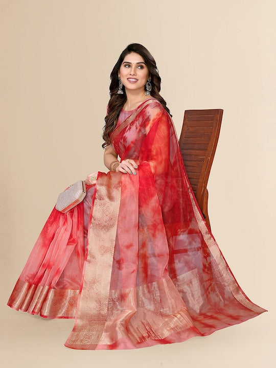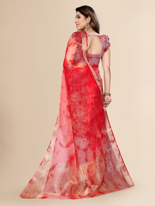 Fabmora Tie and Dye Dyed Zari Organza Saree