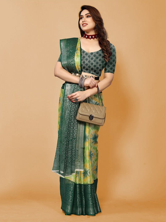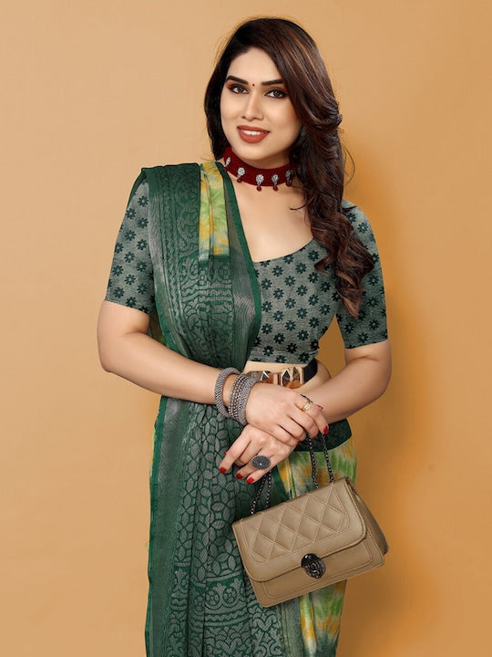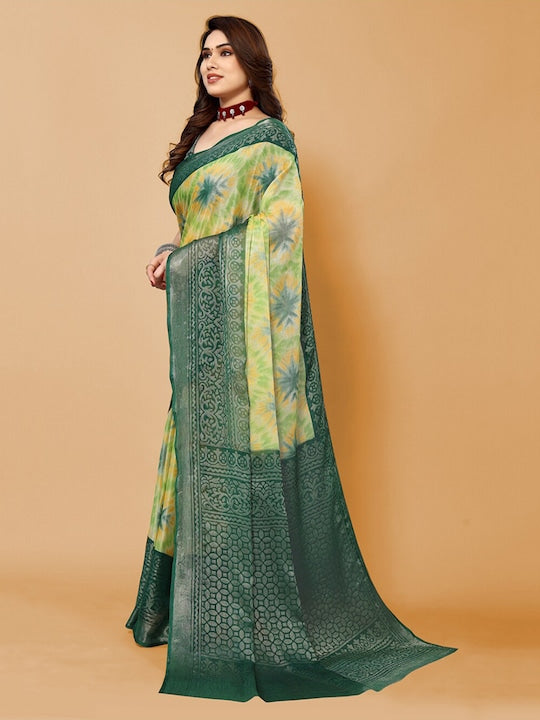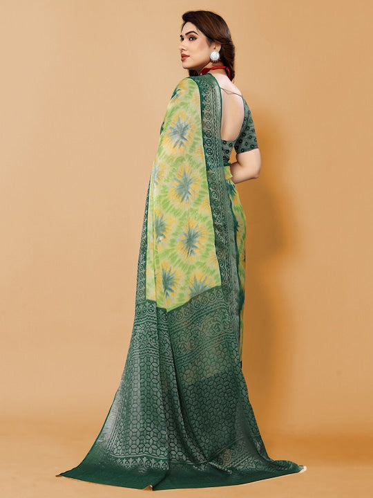 Fabmora Tie and Dye Zari Poly Chiffon Saree