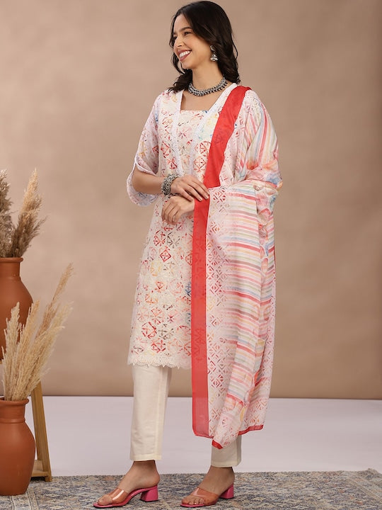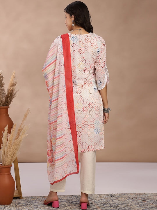 Fabmora Women Printed Regular Pure Cotton Kurta with Trousers & With Dupatta