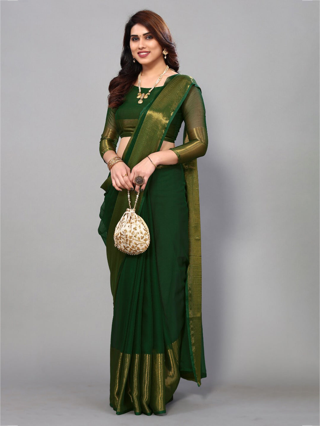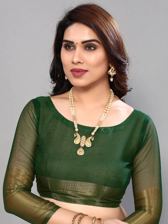 • The saree comes with an unstitched blouse piece. The blouse worn by the model might be for modelling purposes only. Check the image of the blouse piece to understand how the actual blouse piece looks.