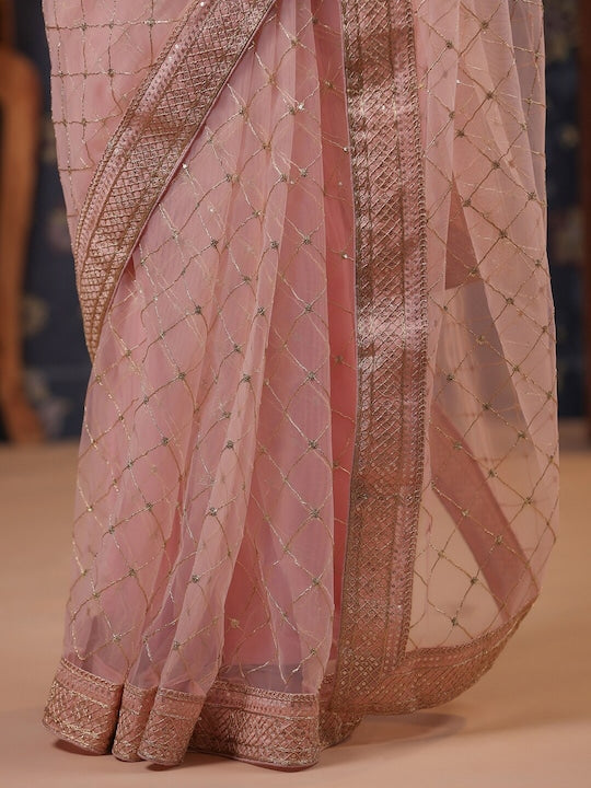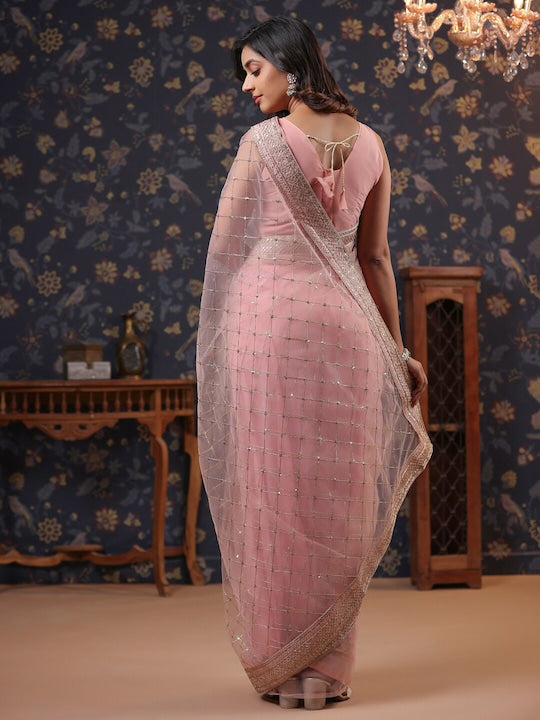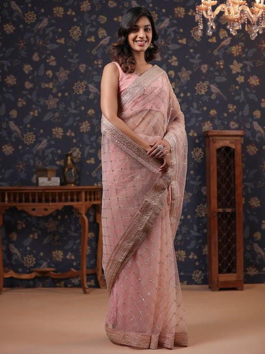 House of Pataudi Checked Embroidered Sequinned Sarees