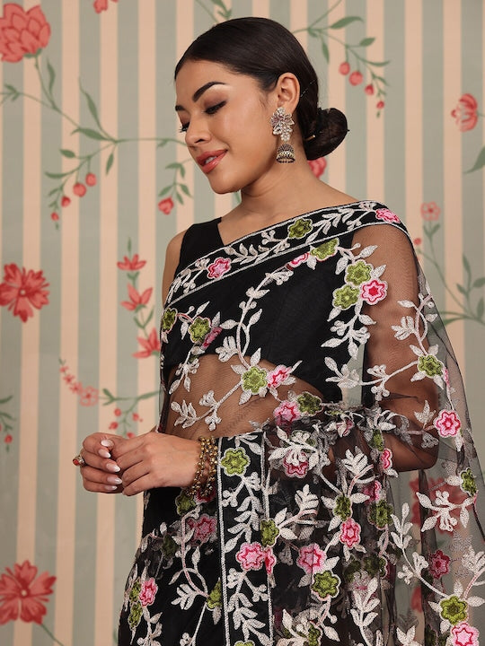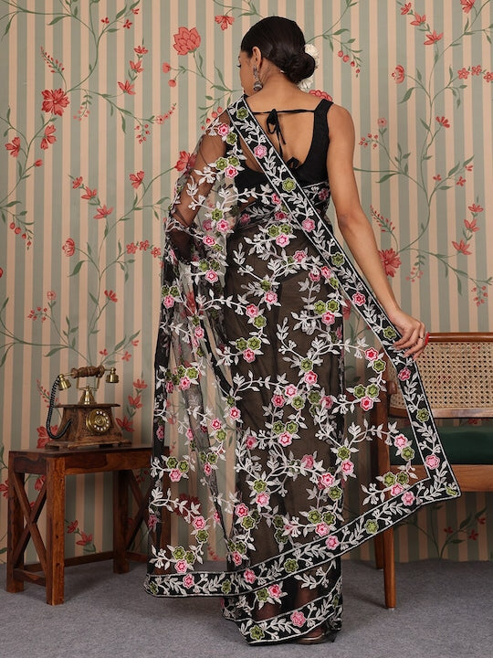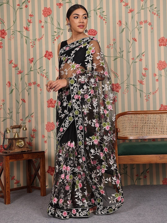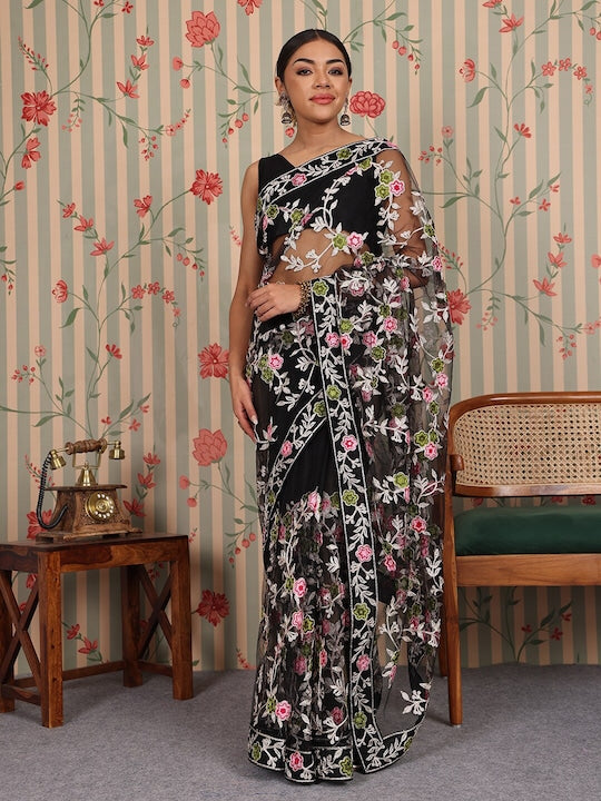 House of Pataudi Embellished Embroidered Net Designer Saree