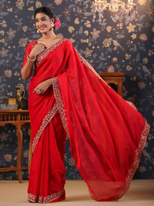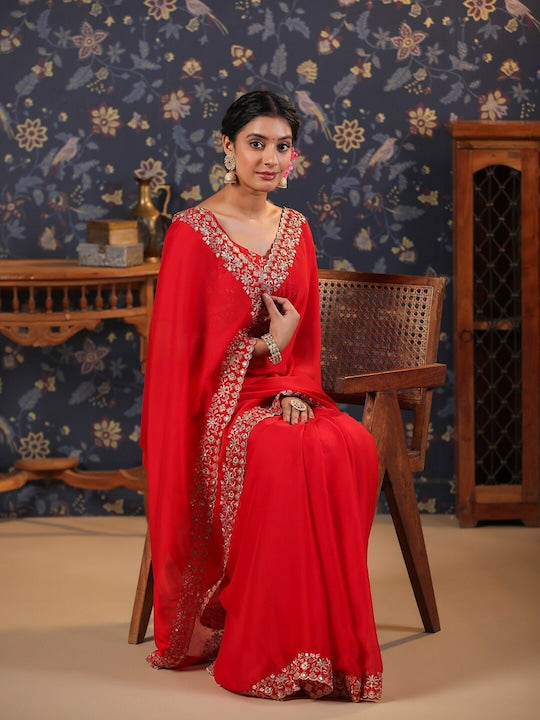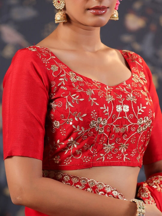 • The blouse worn by the model might be for modelling purpose only. Check the image of the blouse piece to understand how the actual blouse piece looks like.