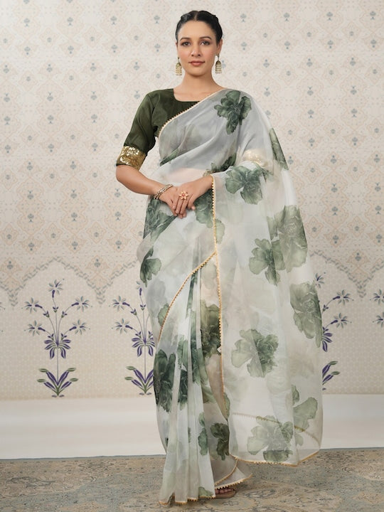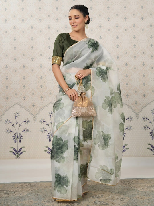 House of Pataudi Floral Gotta Patti Organza Saree