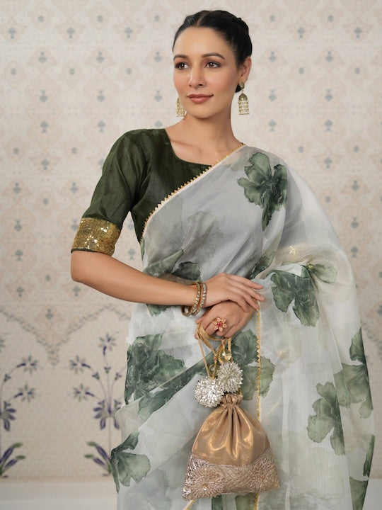 • White and green saree with blouse