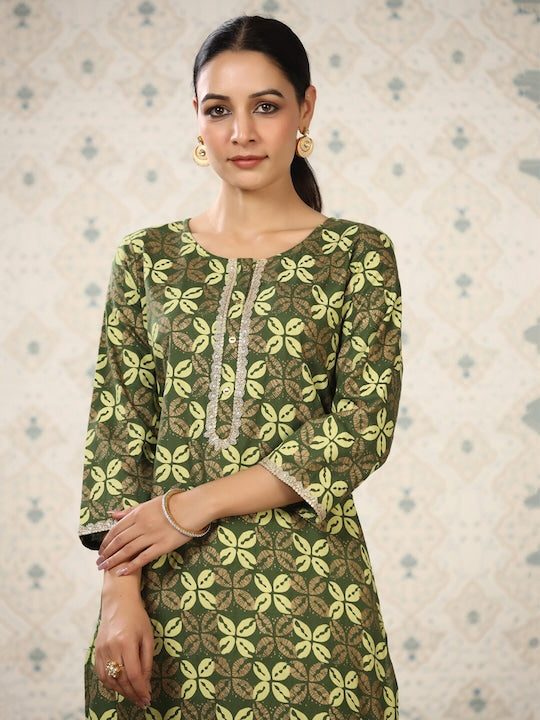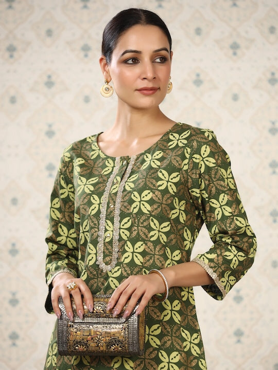 House of Pataudi Floral Printed Round Neck Kurta