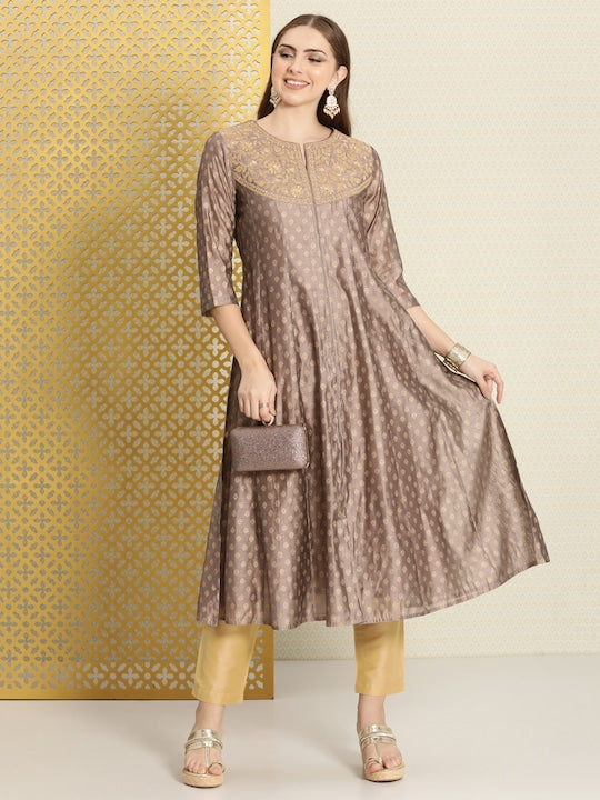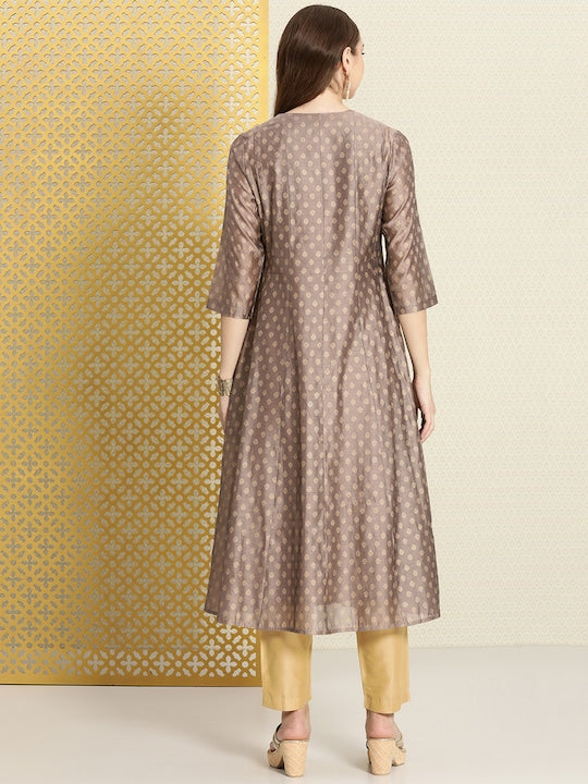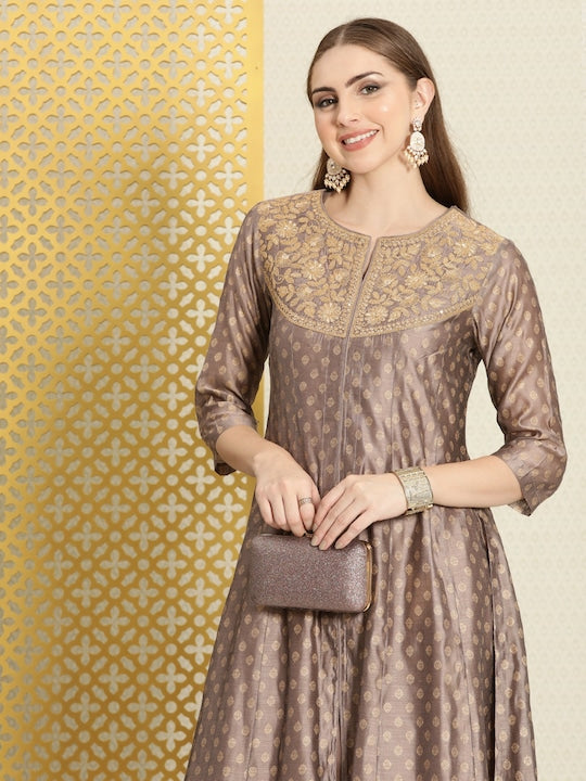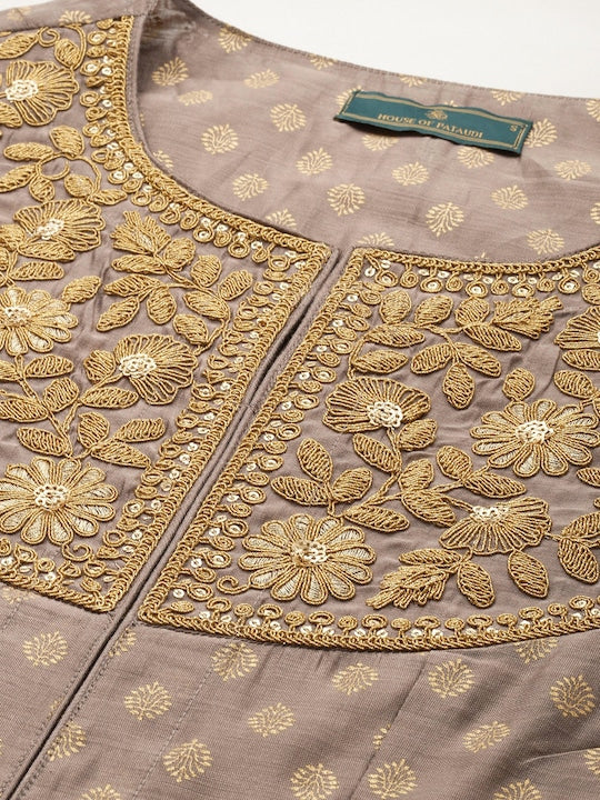 House of Pataudi Gold-Toned Floral Anarkali Jashn Kurta