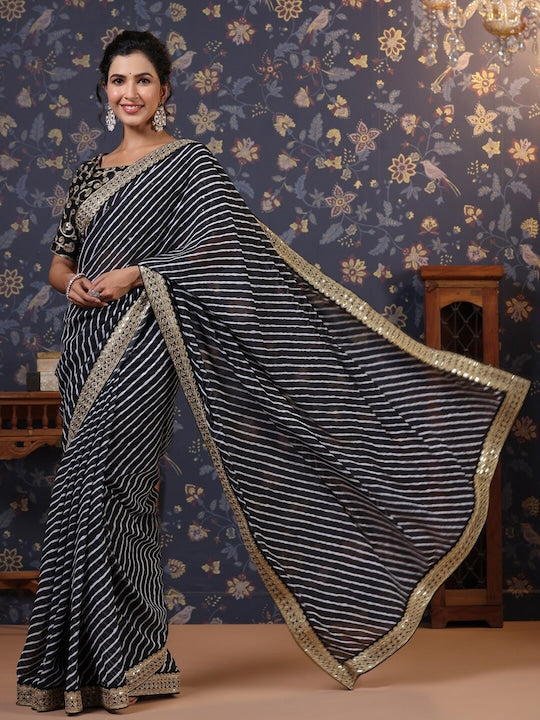House of Pataudi Leheriya Printed & Embroidered Saree