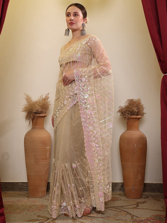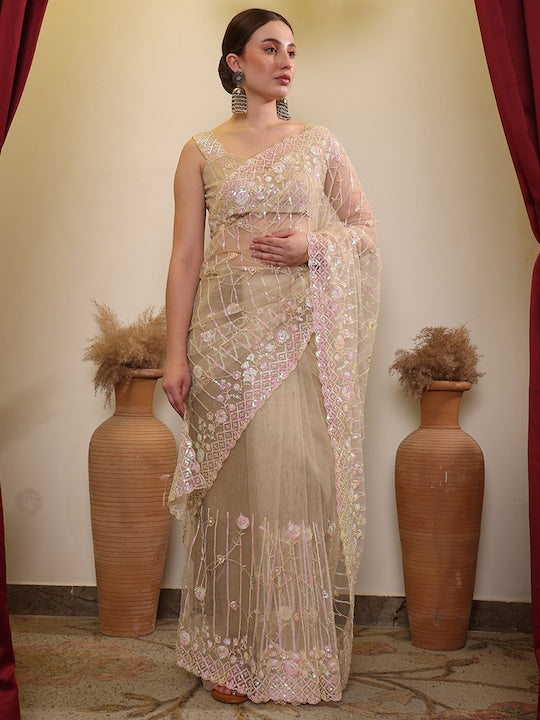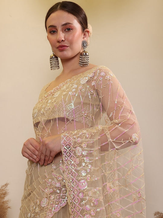 House of Pataudi Sequence Embroidered Saree With Blouse