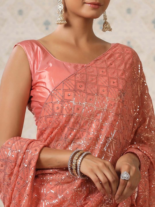 House of Pataudi Sequinned Embellished Poly Georgette Saree