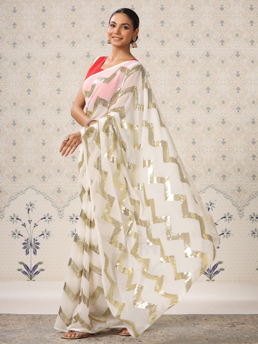- White and gold-toned saree