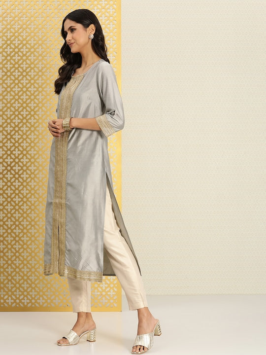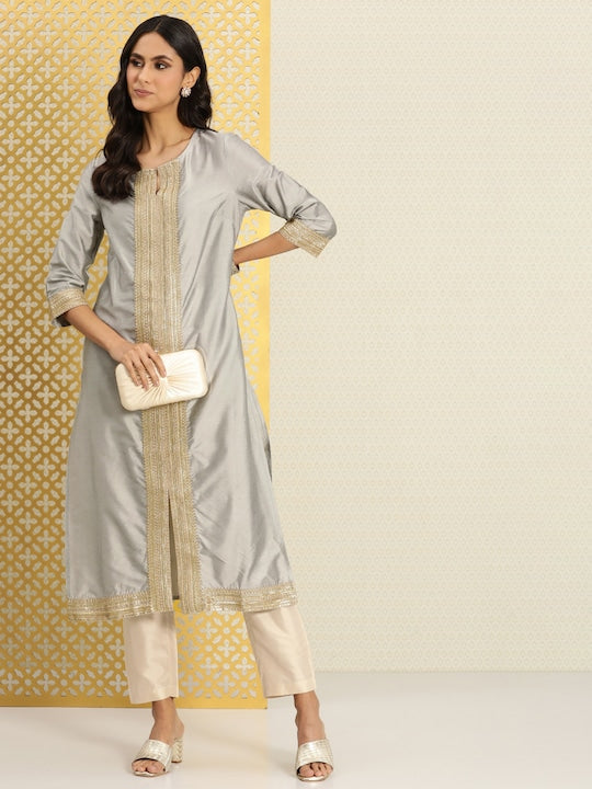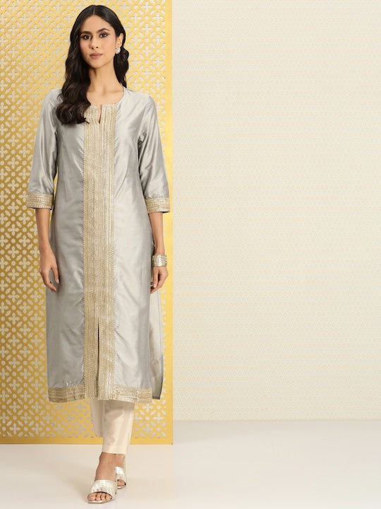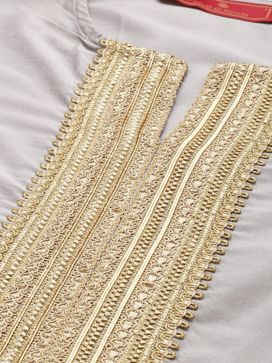 House of Pataudi Solid Straight Gotta Patti Rozana Kurta