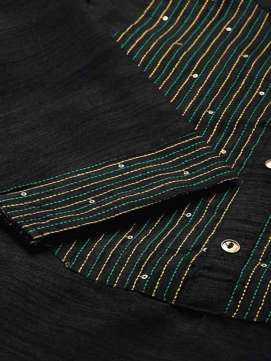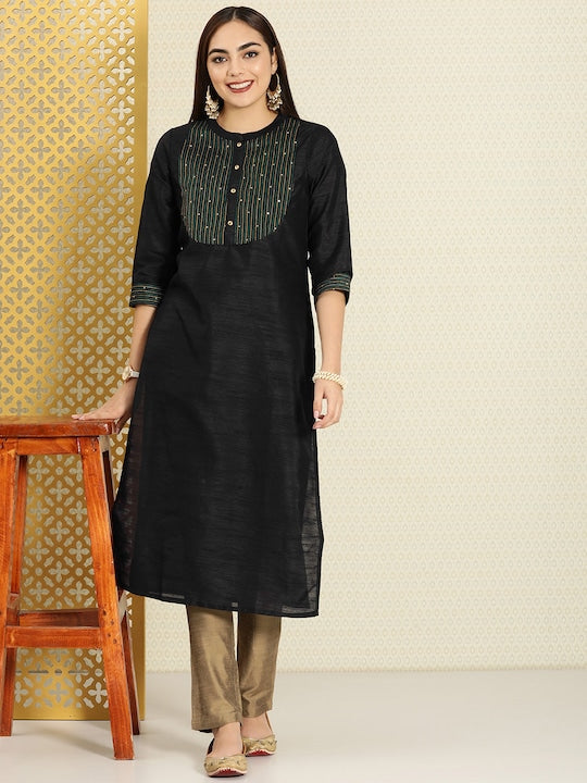 House of Pataudi Women Black Yoke Design Rozana Kurta