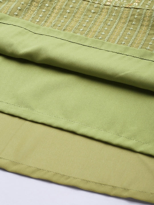 House of Pataudi Women Embellished Sequined Striped Jashn Kurta