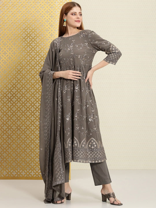 House of Pataudi Women Embroidered Jashn Kurta with Trousers & Dupatta Set