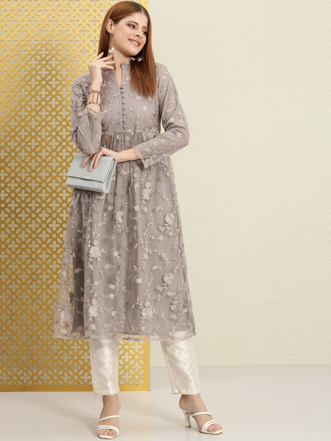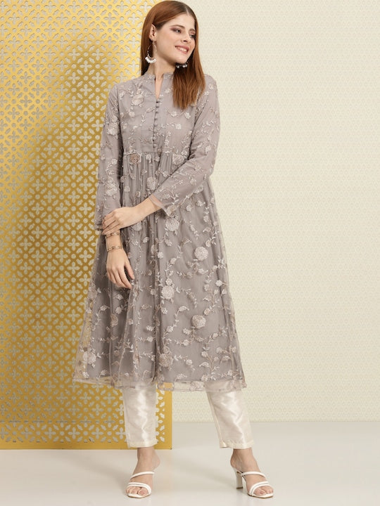 House of Pataudi Women Embroidered Thread Work Floral Anarkali Jashn Kurta