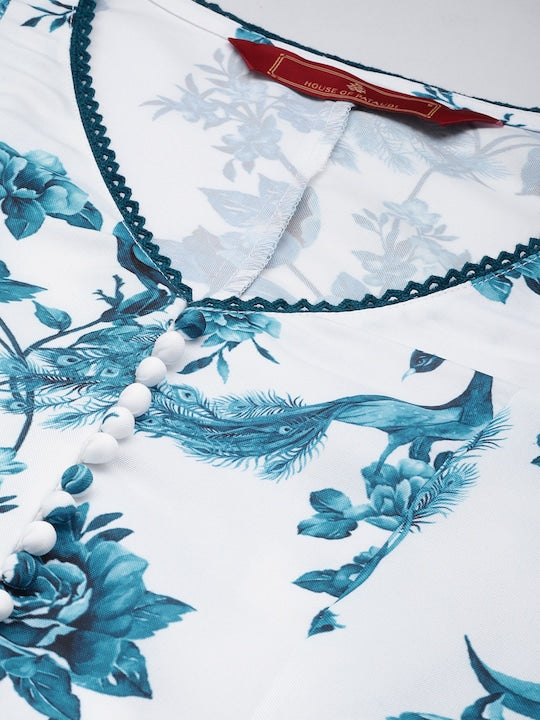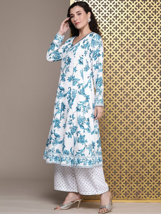 House of Pataudi Women Jashn Floral Printed Kurta With Palazzos & Dupatta
