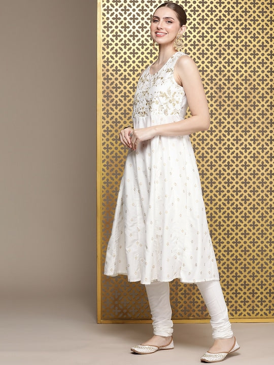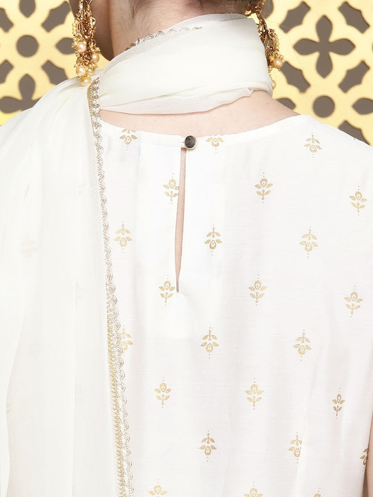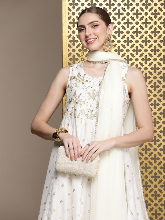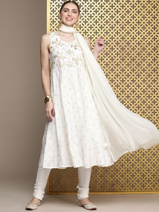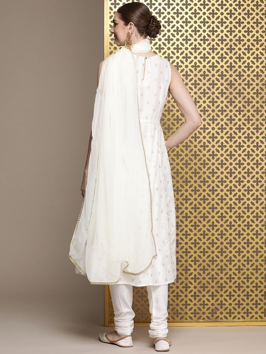 House of Pataudi Women Jashn Floral Zari Work Regular Kurta With Churidar & Dupatta