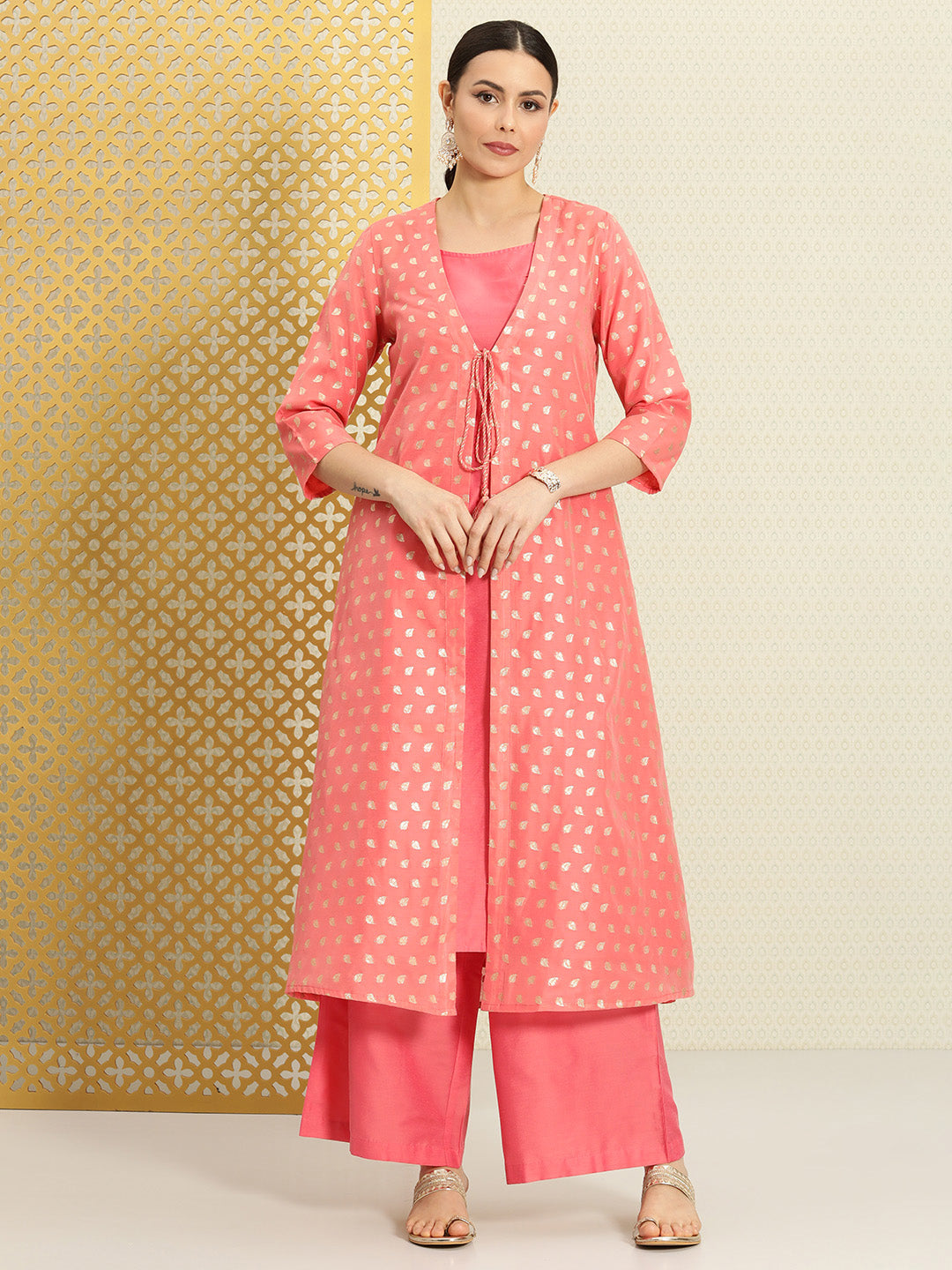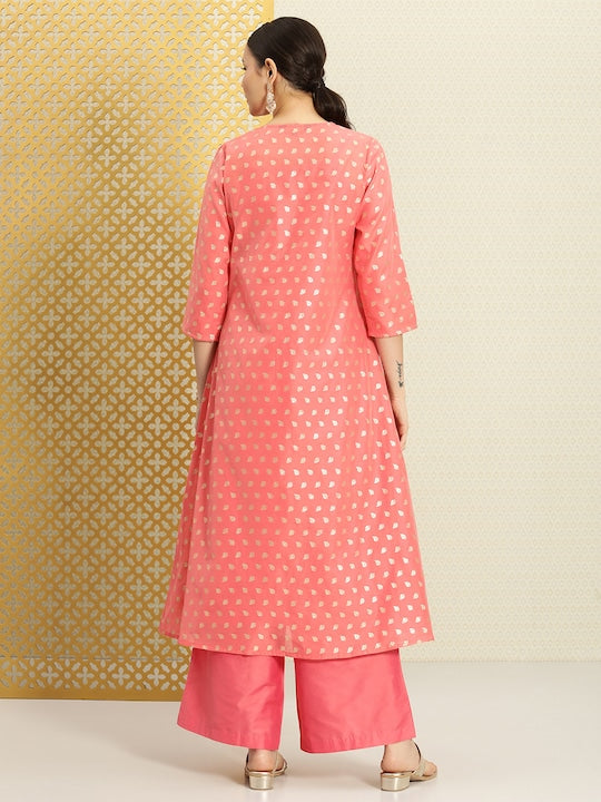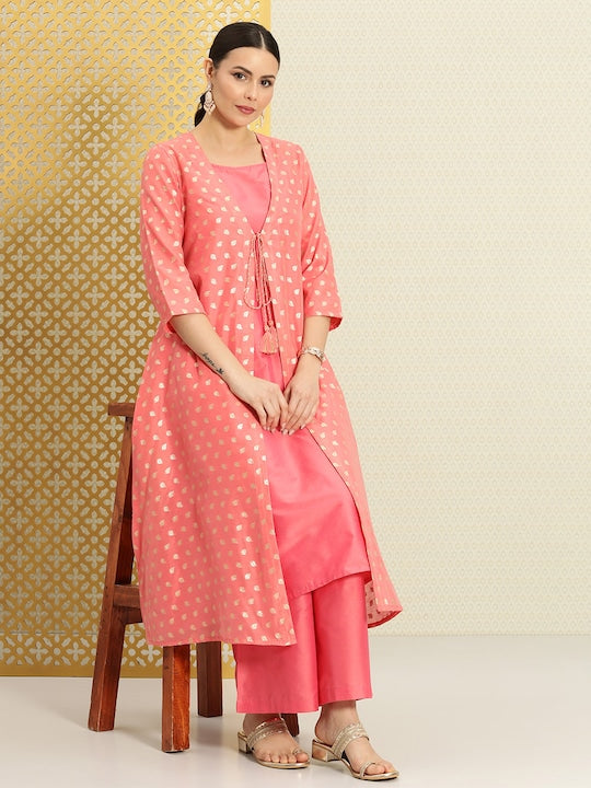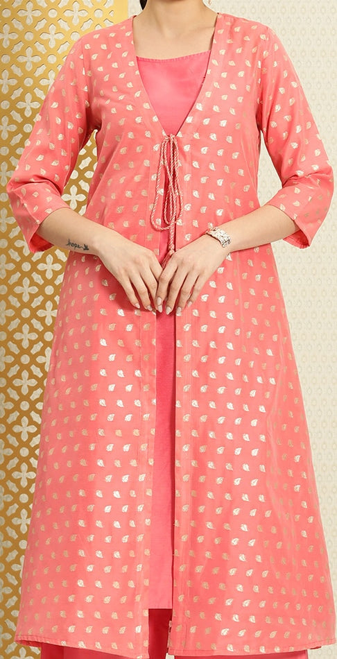 • Pink & coral Kurta with Palazzo & Jacket