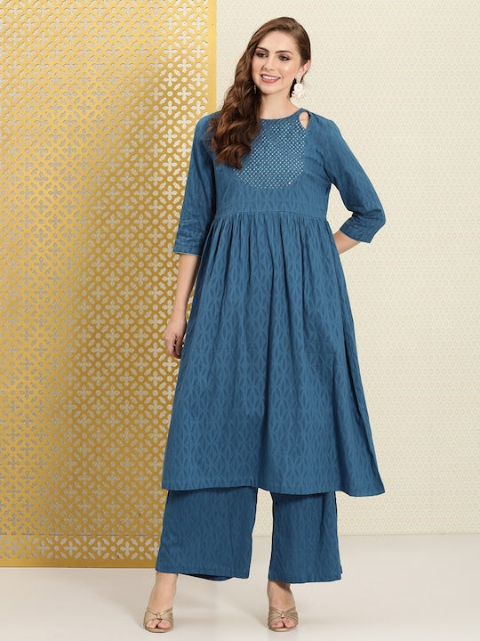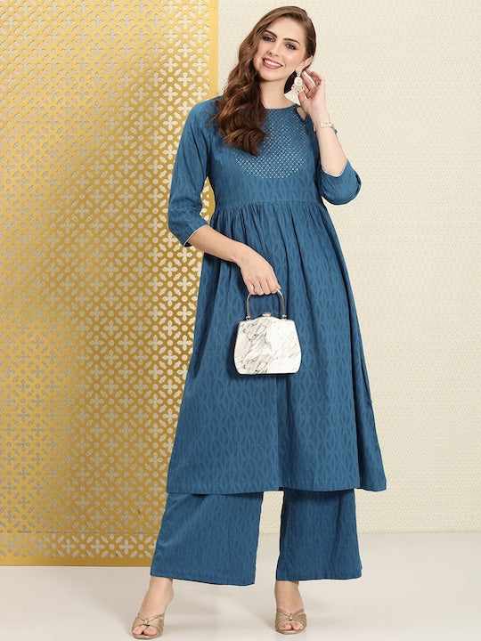 House of Pataudi Women Jashn Sequinned Pure Cotton Kurta with Palazzos