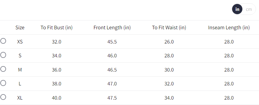 - Waist: 25"