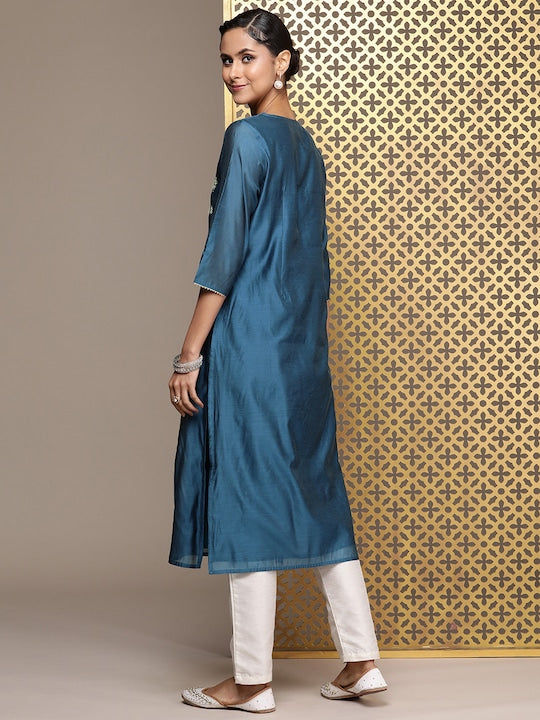 House of Pataudi Yoke Design Sequined Jashn Kurta