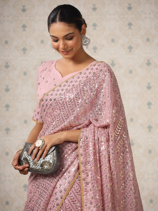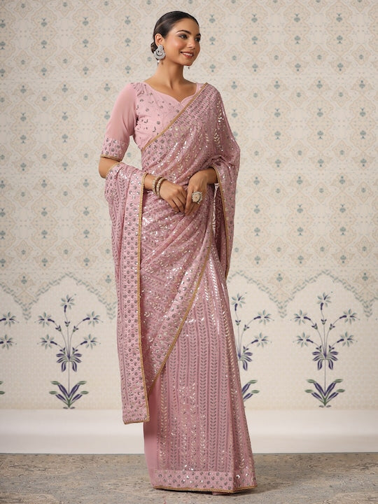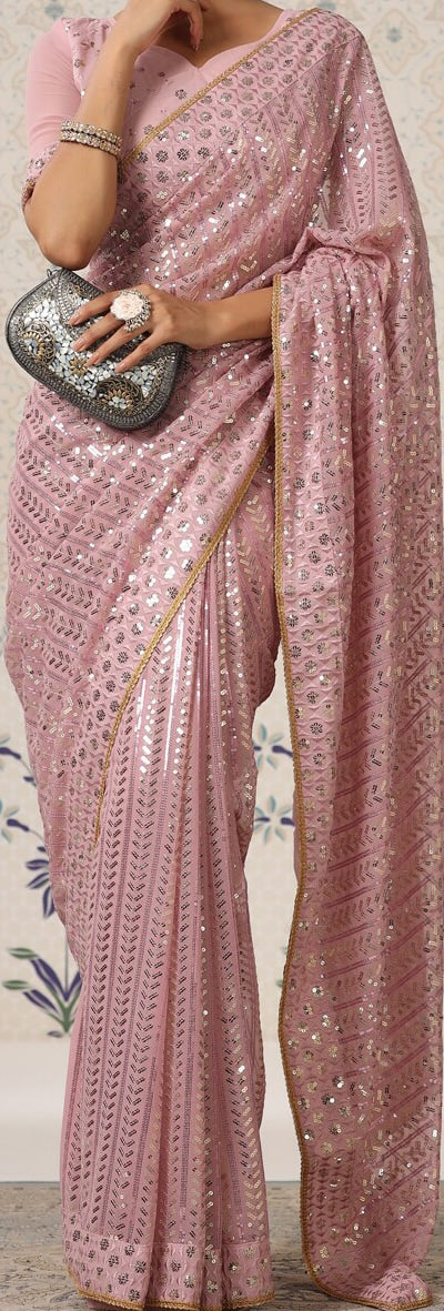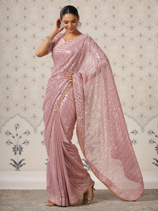 Ode by House of Pataudi Mauve Embellished Sequinned Saree