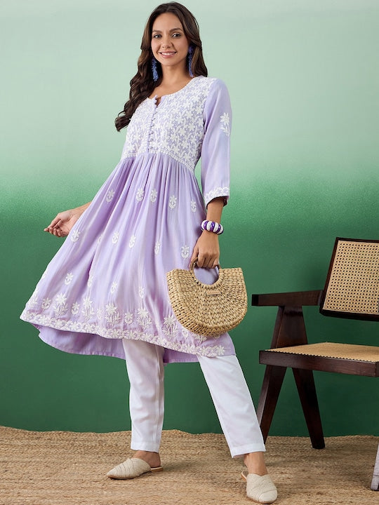 Sangria Floral Embroidered Flared Anarkali Kurta
