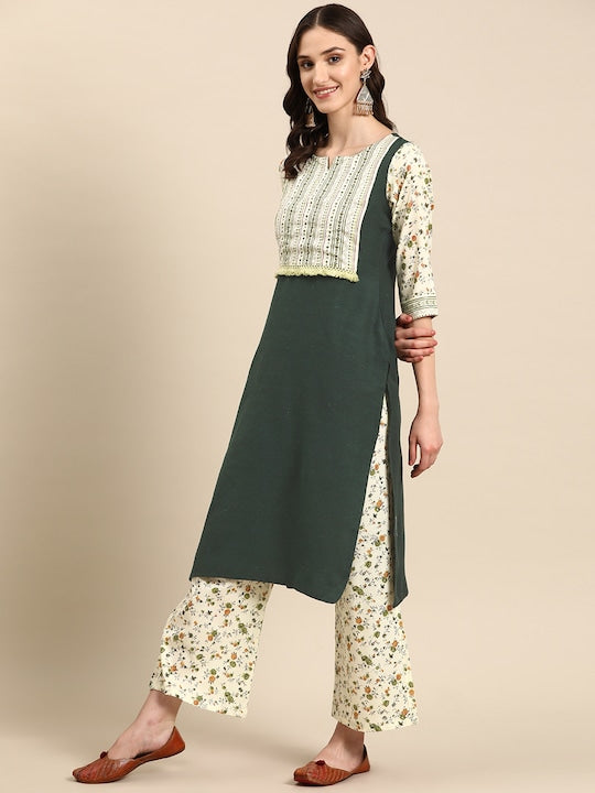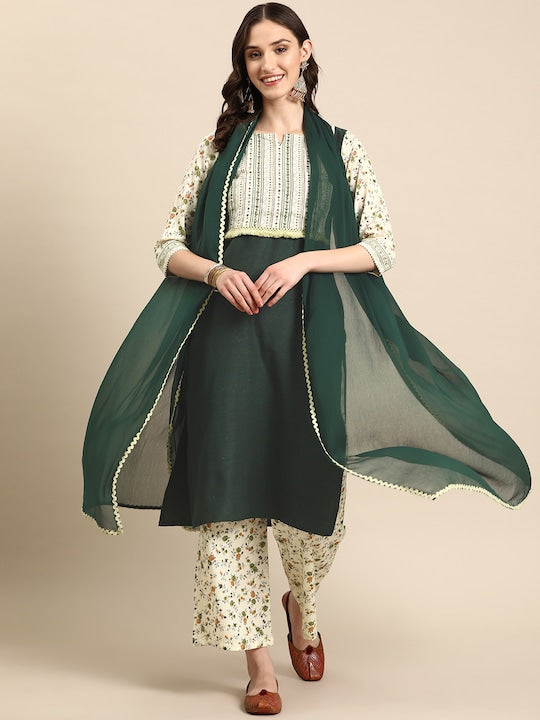 Sangria Floral Printed Kurta with Palazzos & With Dupatta