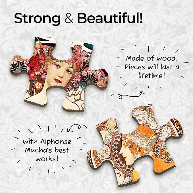 • Educational: Appreciate Mucha's timeless artistry and learn about the Art Nouveau movement while boosting focus and memory through this intricately designed wooden jigsaw puzzle.