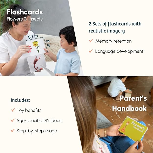 - Montessori Playset Bundle: The Curious Cub Montessori toys for 1+ year-olds from 12 months to 18 months include 8 thoughtfully selected learning toys like car tracker, magnetic bird feeder, watering can, insect puzzle, mealtime math book, flowers flashcard, insect flashcard and a parents handbook.