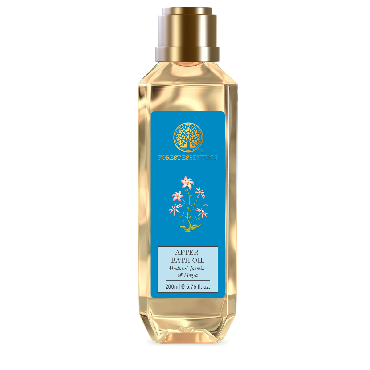 • The traditionally seductive blend of the The Forest Essentials After Bath Oil Jasmine & Mogra leaves the skin lightly scented and glossy.