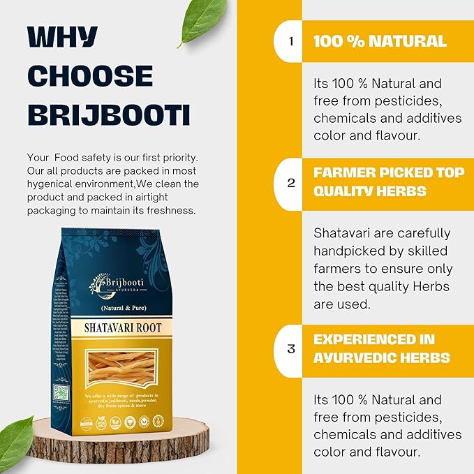 - Our yellow Shatavari Root is sourced from farms directly and it's 100 % Natural and free from pesticides, chemicals, and additives.