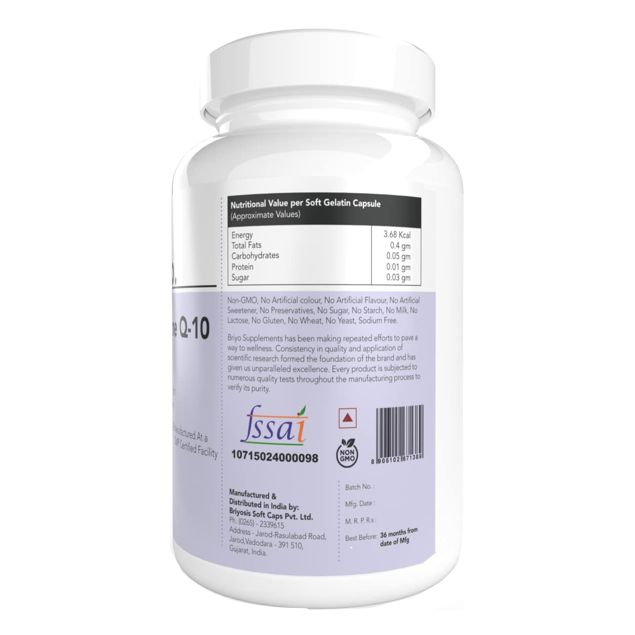 • CoQ10(Ubiquinone) 100 mg per softgel can help you reach optimal levels of Coenzyme Q10 sooner, so you can experience the potential benefits faster. Briyo CoQ10 + Omega 3 contains pure coenzyme Q10 (Ubiquinone), vital to the production of ATP (adenosine triphosphate), especially in the heart. It helps support heart function and promote energy production in the cells.