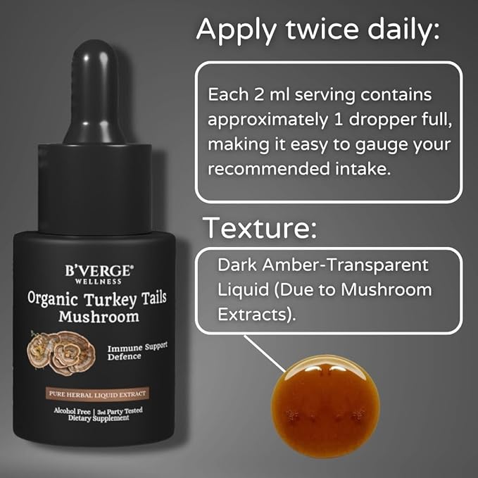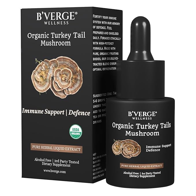 • B'VERGE Turkey Tail Mushroom Extract: Strengthen your immune system with our liquid extract. Packed with antioxidants, it supports overall wellness and digestive health, offering a natural boost for your body.