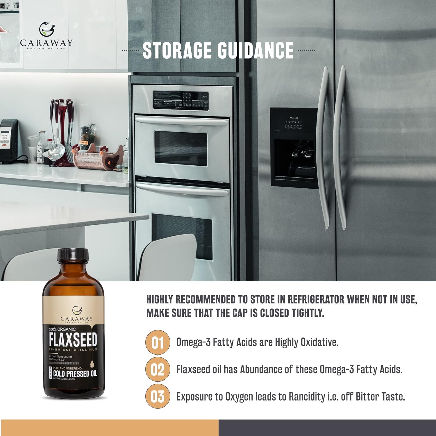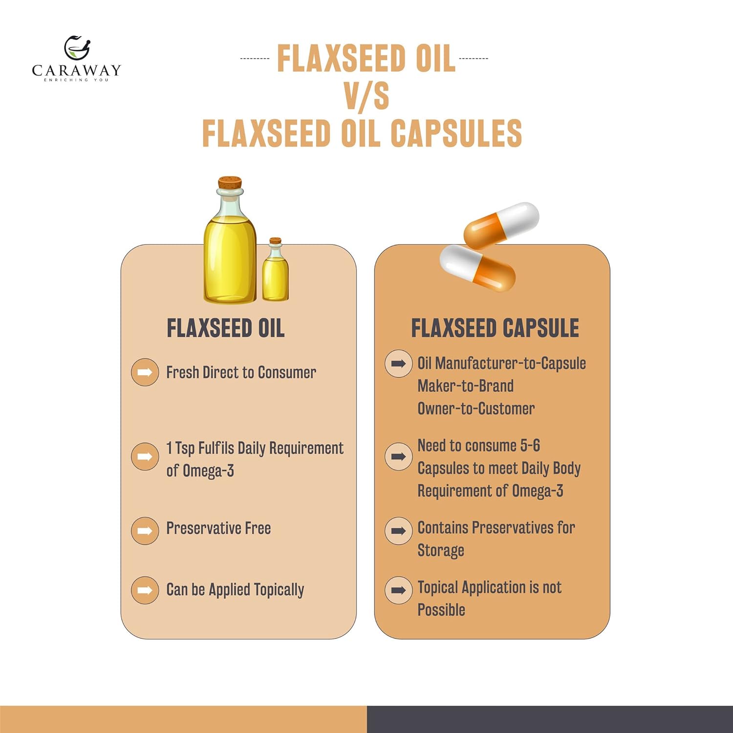 • CARAWAY Cold Pressed Flax Seed Oil is prepared by pressing Flaxseed on a Sil-Batta, taking a step forward from commonly available Wood Pressed Flaxseed Oil. It is then Followed by a 3 Step Natural Sedimentation process. Result? Flax Seed Oil rich in Omega 3 completely Unfiltered and Chemical Free.