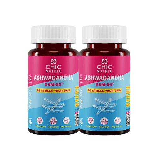 • Destress your skin with Chicnutrix Ashwagandha KSM-66. Ayurvedic herb Ashwagandha (KSM-66), also known as "Indian Ginseng", is a standardized, full spectrum, bioavailable extract produced with unique proprietary extraction process.