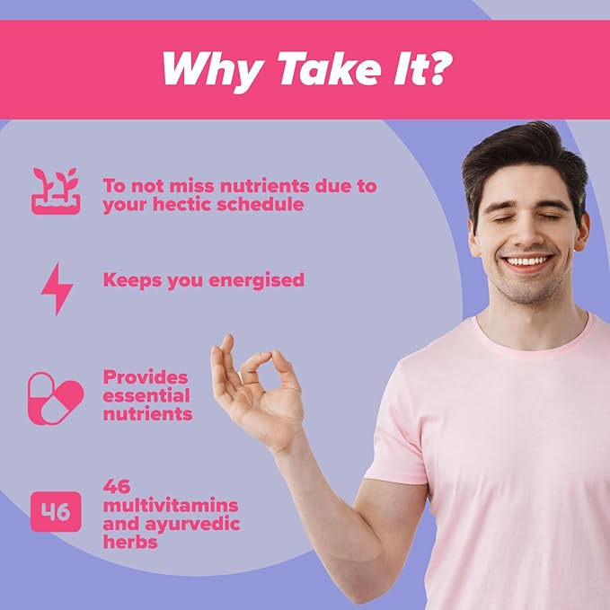 • Ayurvedic & Herbal Support: Combining Ayurvedic multivitamin benefits with herbal extracts like Ashwagandha, Milk thistle, Moringa, Curcumin, Brahmi, Spirulina and Cinnamon. This supplement supports stress relief, mental clarity, and better sleep. Perfect for adults looking for a natural boost in energy and focus.