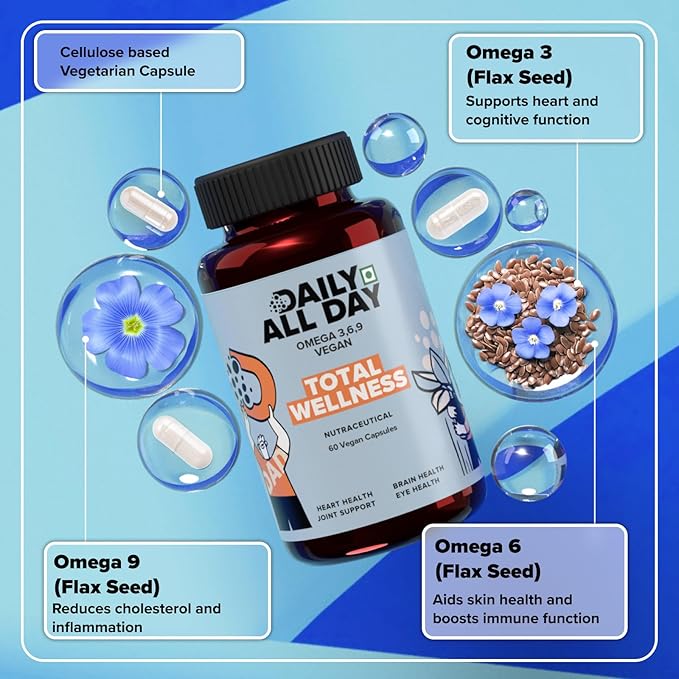 Daily All Day Vegetarian Omega 3 6 9 Supplement Capsule 1000mg Total Wellness - 60 caps