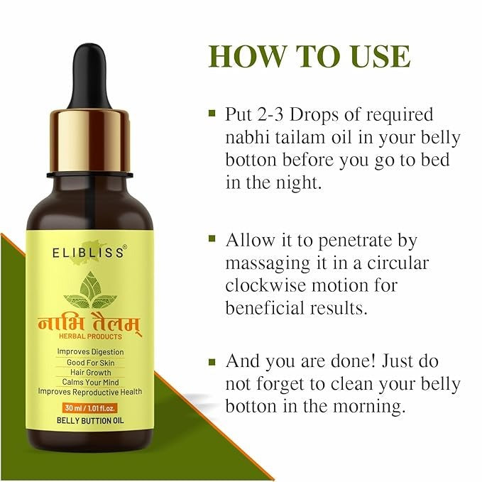 - Nabhi Care and Beyond: Your navel, or "Nabhi," holds immense significance in Ayurveda. Our oil respects this ancient wisdom, offering relief and support for Nabhi-related concerns. With herbal extracts and nourishing oils, it's your solution for a happier navel and a healthier you.