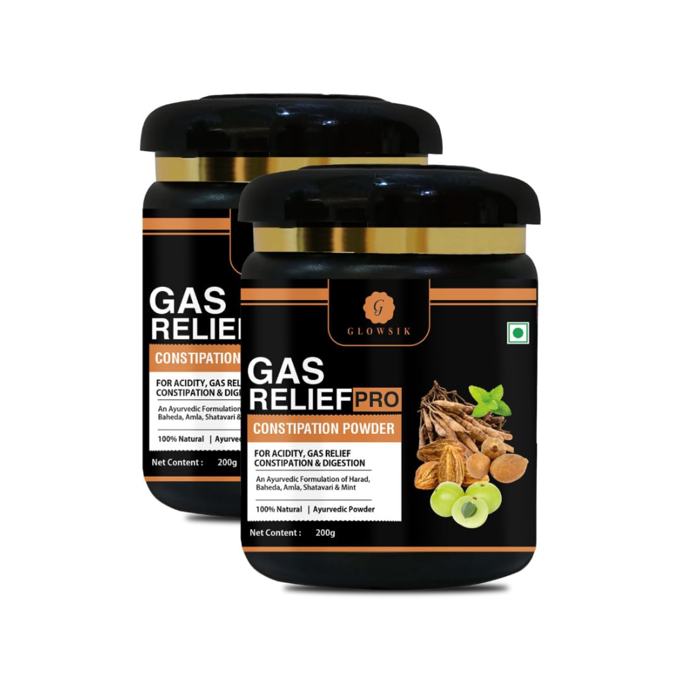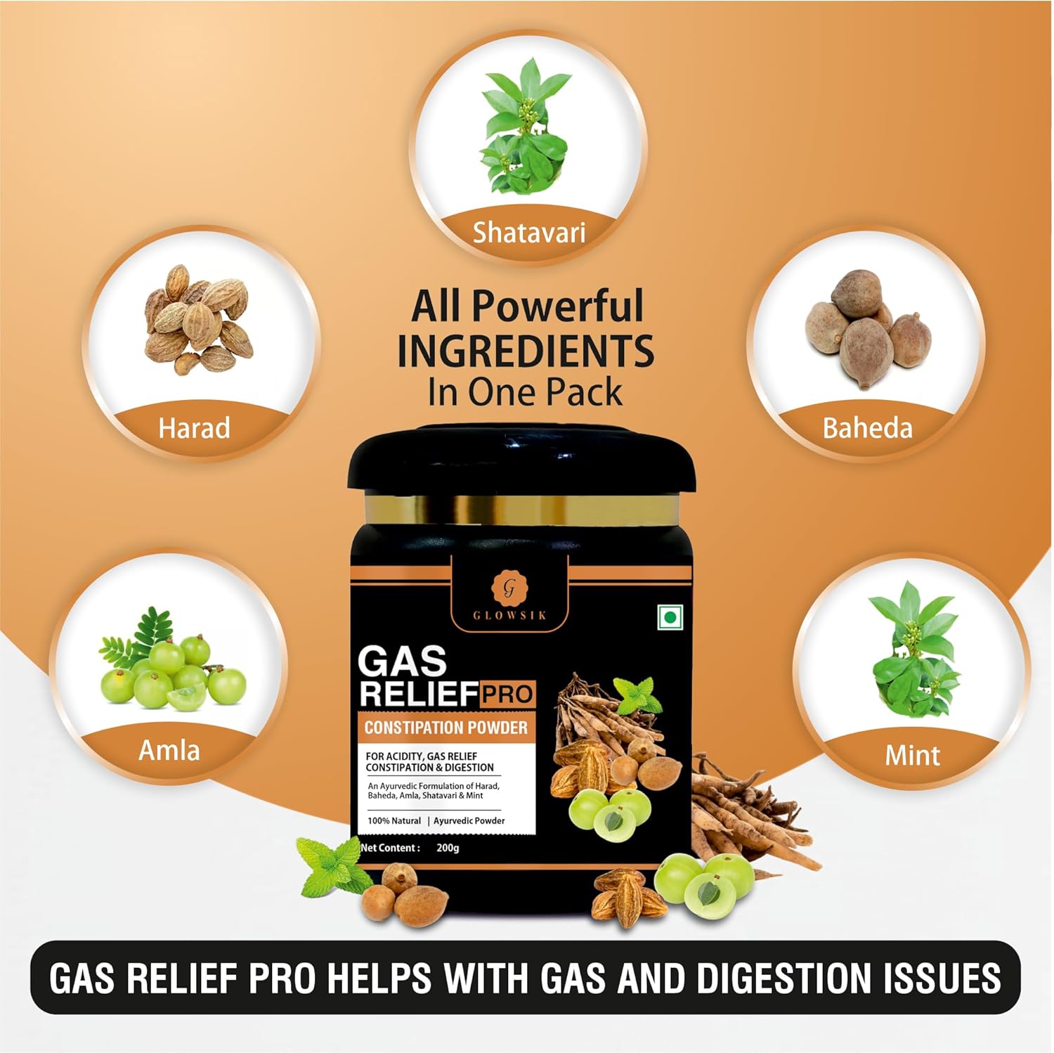 Glowsik Gas Relief Pro Powder for Gas Relief, Acidity Relief, Ayurvedic Digestive Health Care - 200 Gms | Pack of 2