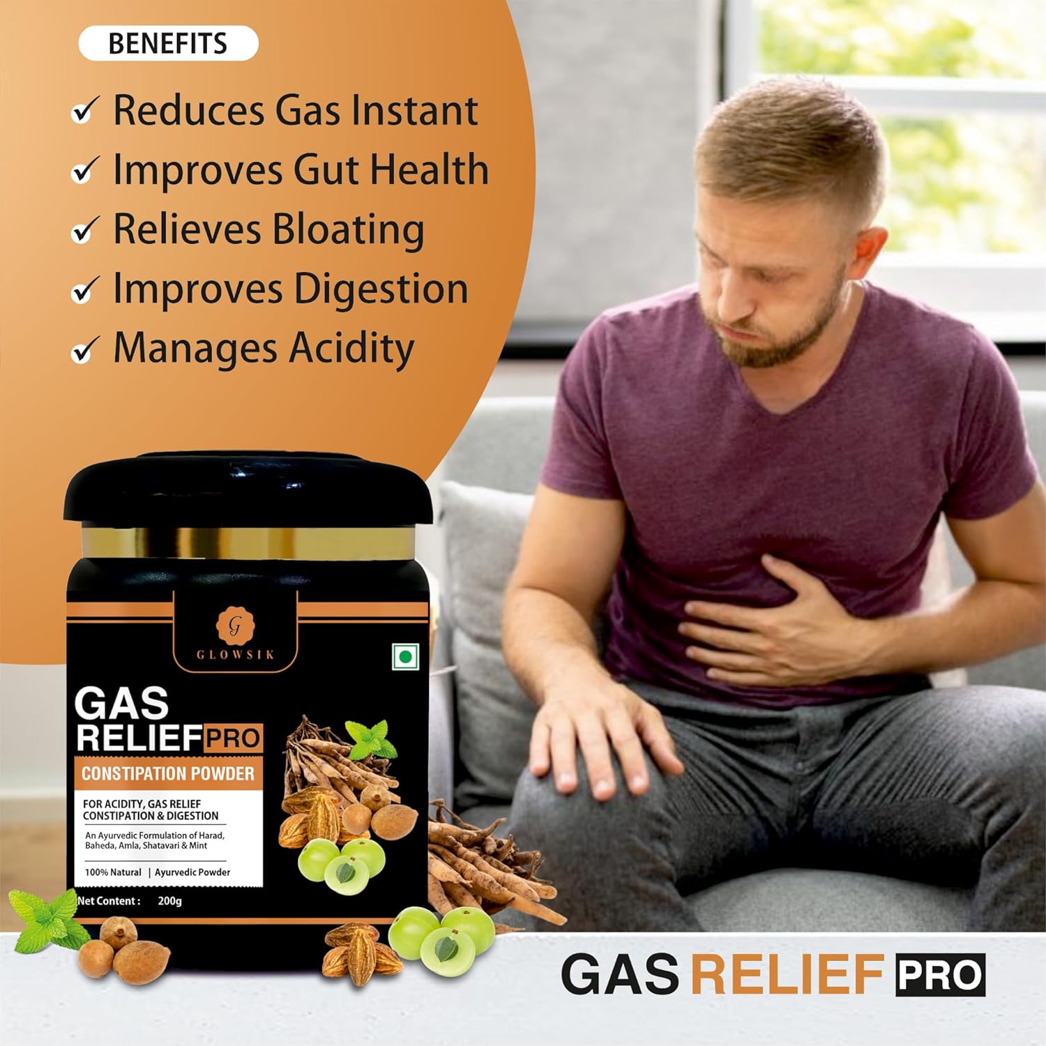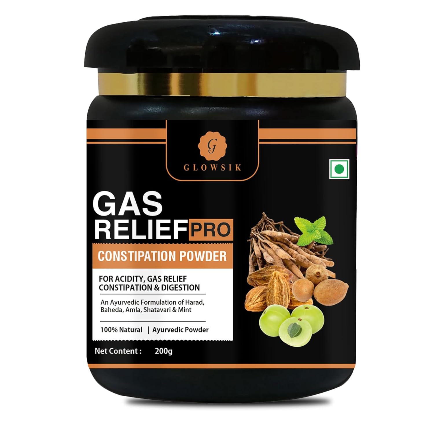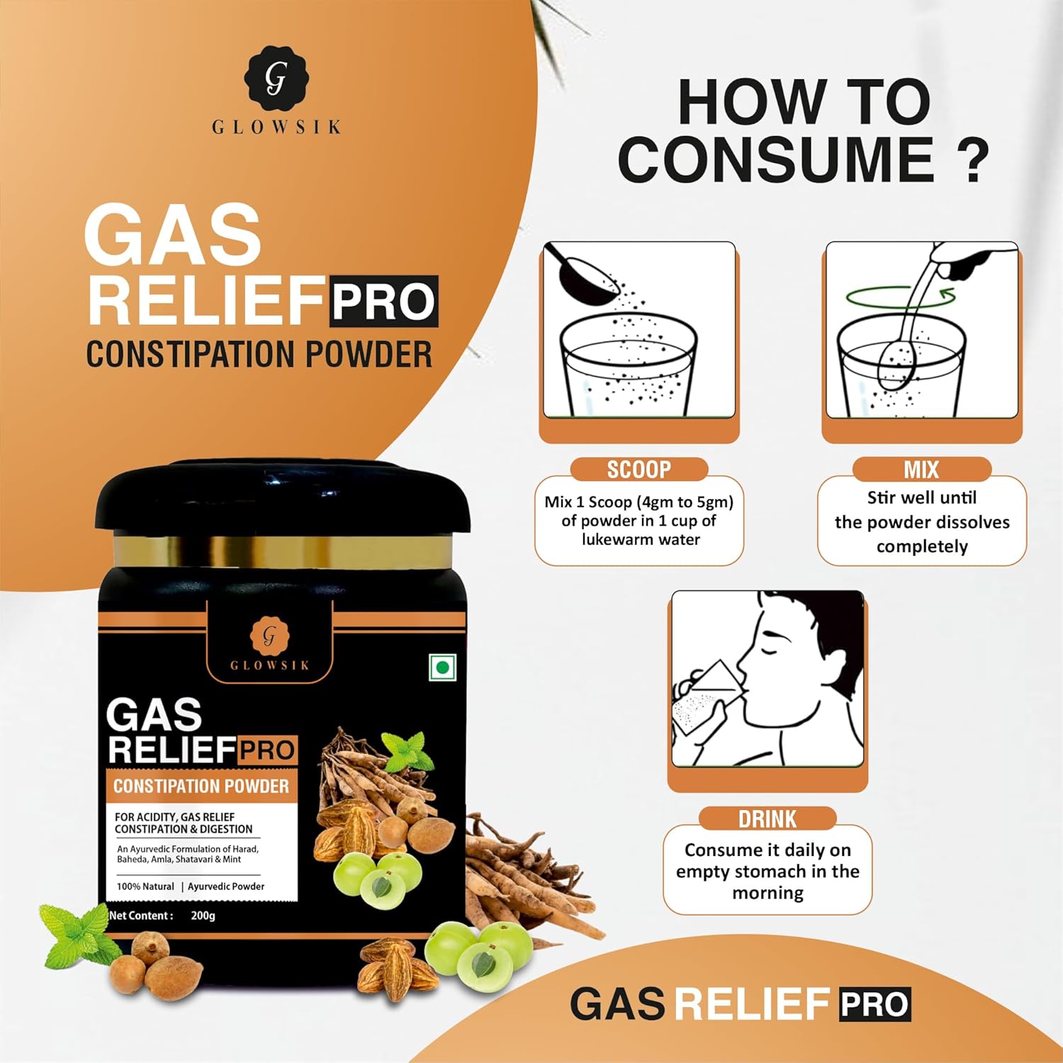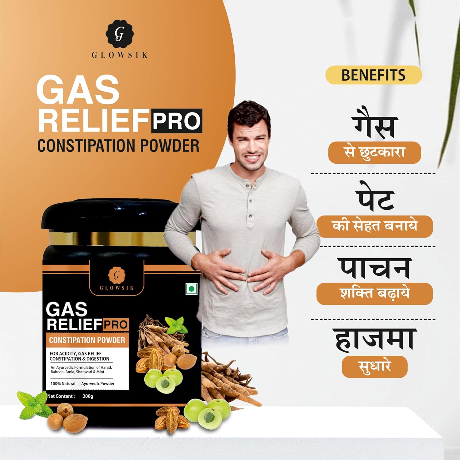 • Fast-Acting Ayurvedic Formula for Gas & Bloating Relief – Experience rapid relief from gas, bloating, and acidity with GLOWSIK Gas Relief Pro Powder. Formulated with potent Ayurvedic ingredients, it targets gas bubbles directly to provide quick and effective relief from digestive discomfort.