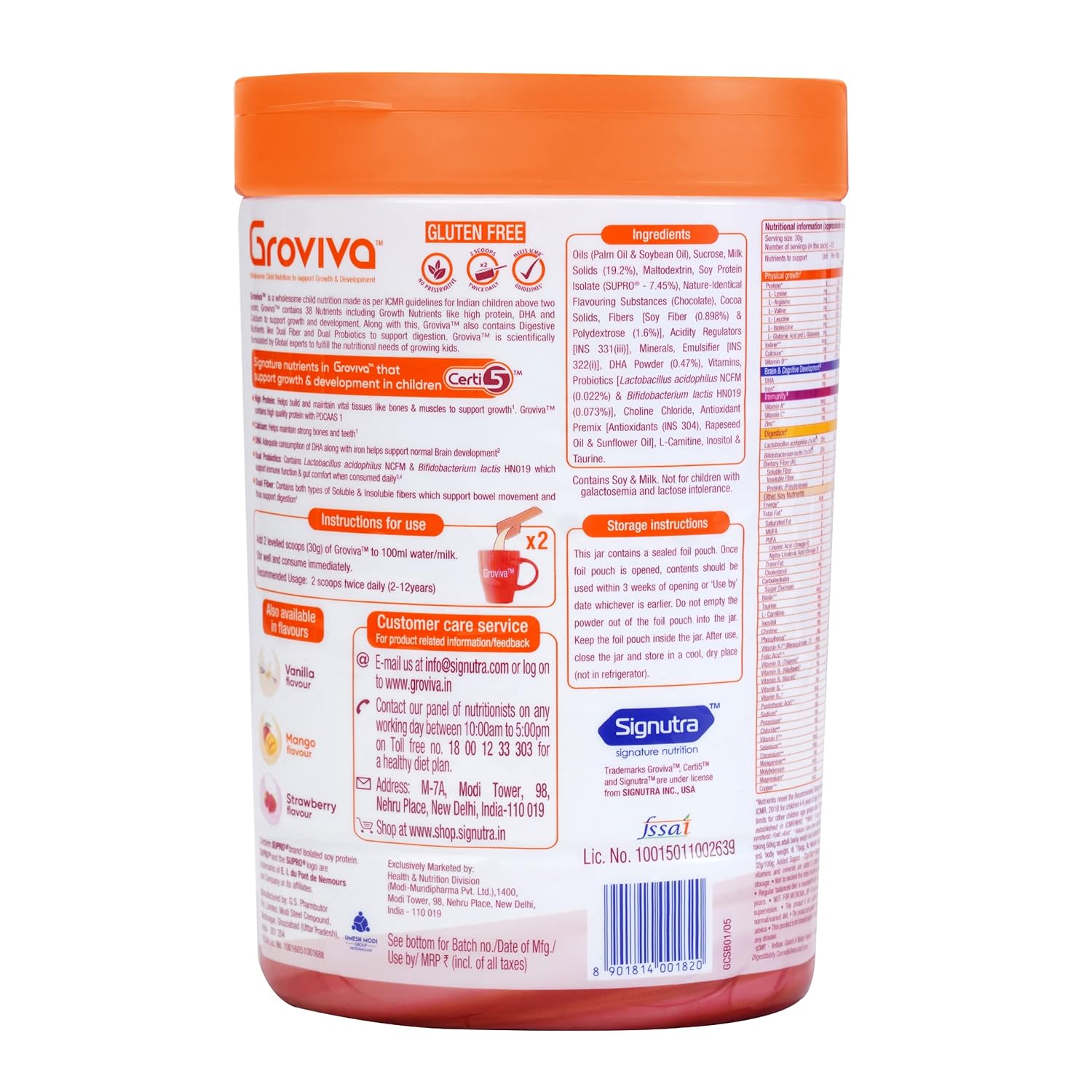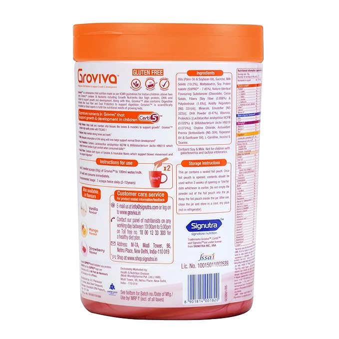 • Groviva is available in four tasty flavors : Chocolate, Vanilla, Mango & Strawberry.