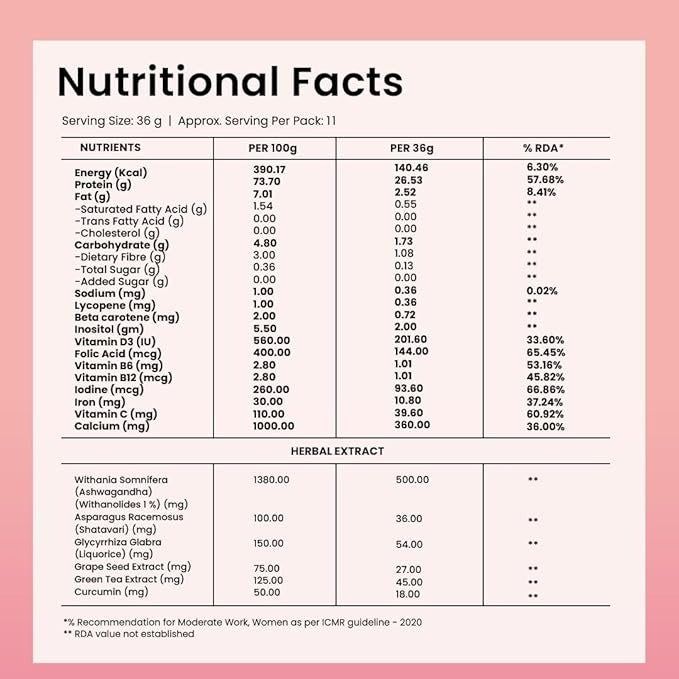 • Clinically Backed Ingredients: Inositol for hormonal health, Ashwagandha for stress relief, and full amino acid support for overall well-being.