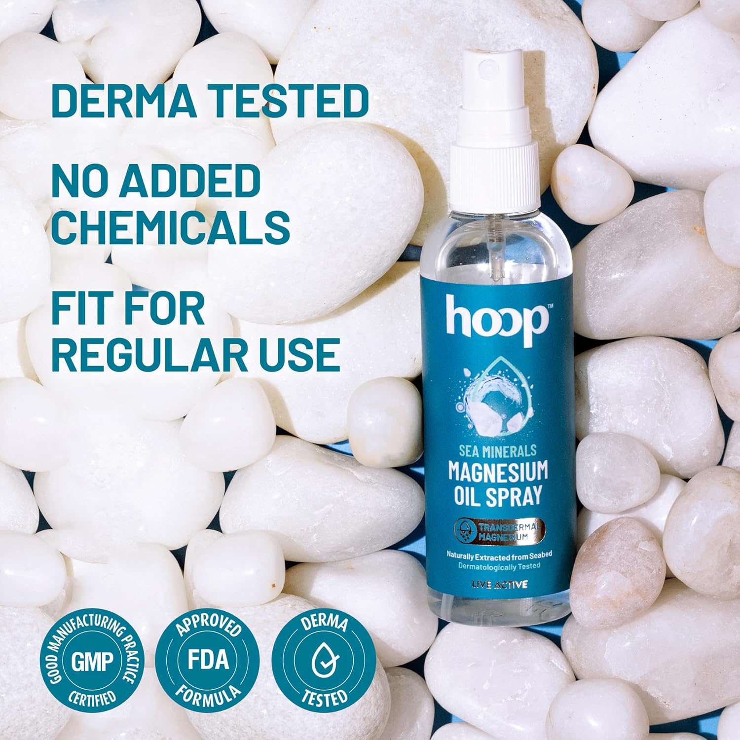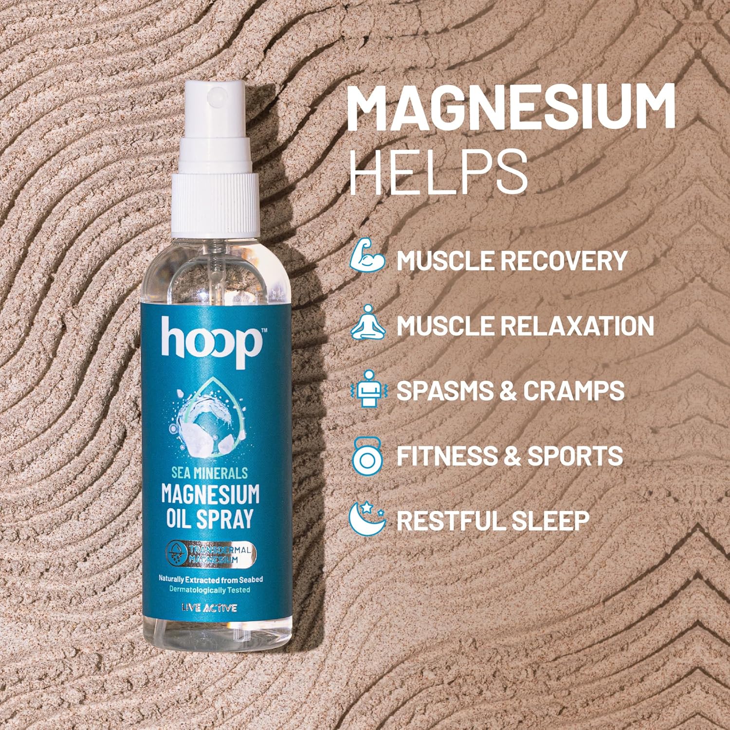 - Natural Magnesium: hoop Magnesium Spray contains natural magnesium oil extracted from seabed