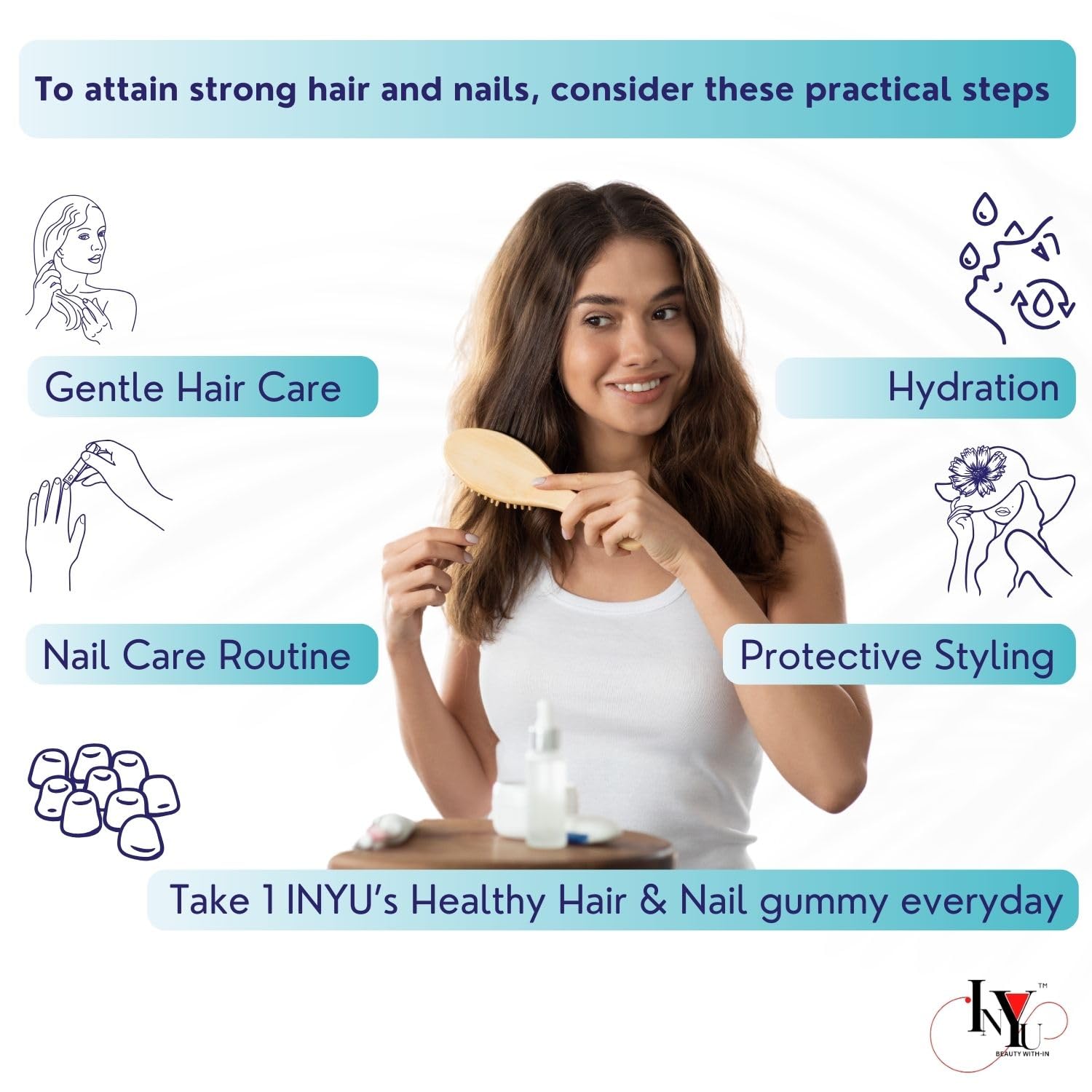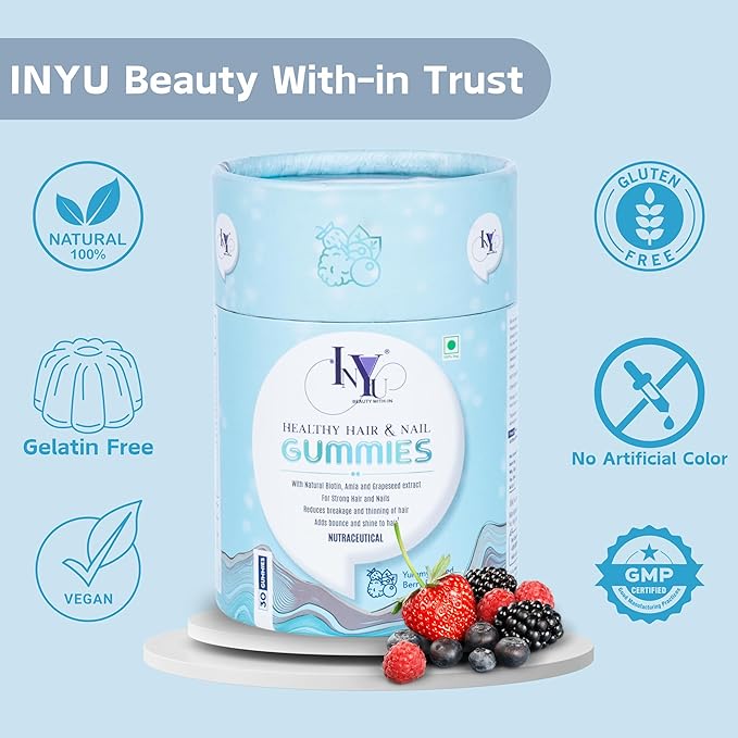 Inyu Healthy Hair & Nail Gummies for Women & Men - 30 Gummies Each (Pack of 2)